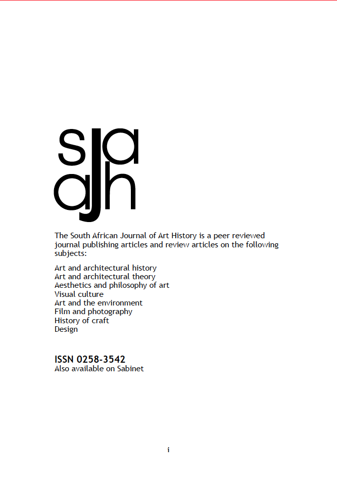 The South African Journal of Art History is an accredited, peer reviewed journal that publishes scholarly articles on the following subjects: